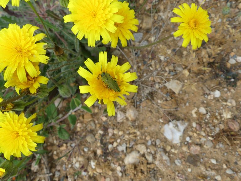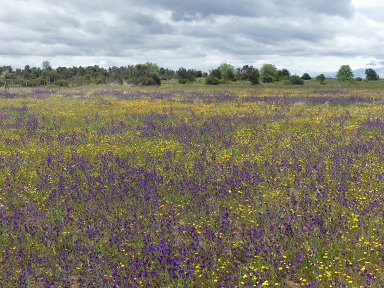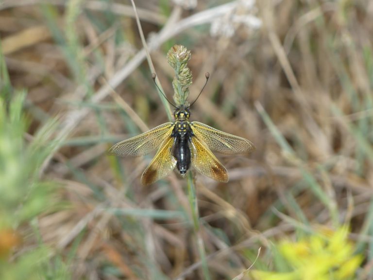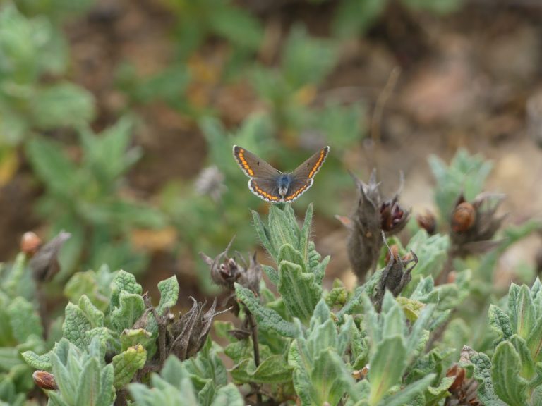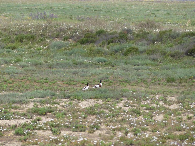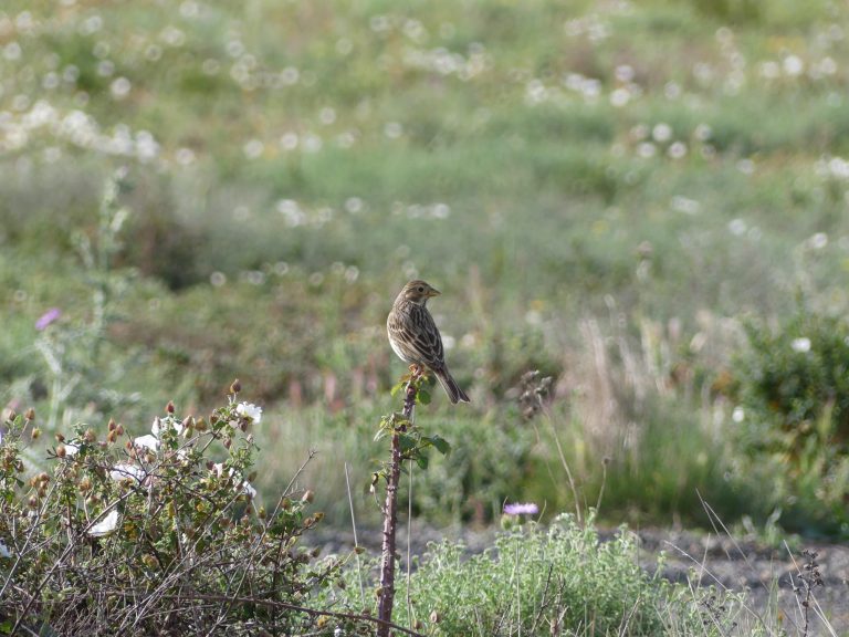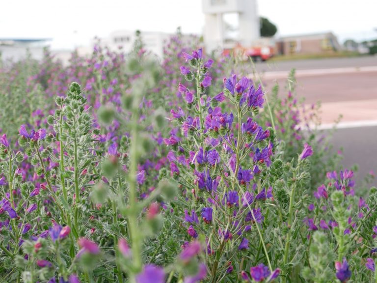 C’est au milieu d’un océan de fleurs de Vipérine (Echium plantagineum) mais aussi sur les fleurs blanches ou roses des cistes (Cistus spp.) que l’on peut apercevoir de nombreuses espèces d’insectes ou d’araignées : L’Anthaxie hongroise avec ses jolis reflets verts (Anthaxia hungarica), le Collier-de-corail (Aricia agestis) avec sa rangée de point orange, ou encore la Thomise Napoléon (Synema globosum) avec son bicorne dessiné sur l’abdomen. Les surfaces ouvertes de l’aéroport abritent de nombreuses espèces d’oiseaux comme la Tadorne de Belon, le Pipit rousseline, l’Outarde canepetière ou l’Œdicnème criard mais également des espèces typiques de la région comme le Coucou geai ou encore le Rollier d’Europe. Des migrateurs sont également observés en nourrissage sur la plateforme comme le Tarier des prés ou le Traquet motteux.
