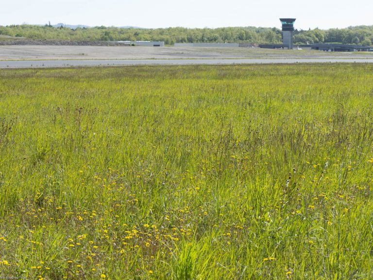 Construit sur le causse en 2010, le nouvel aéroport de Brive accueille une végétation riche et typique des pelouses sèches calcicoles. Il constitue la limite nord de répartition de certaines espèces typiquement méditerranéennes comme l’Argyrolobe de Linné (Argyrolobium zanonii) particulièrement abondant sur la plateforme. Les habitats forment une mosaïque complexe entre pelouses sèches, prairies semi-sèches et fourrés à prunelliers et ronces. La gestion des espaces verts très peu interventionniste favorise le développement d’une biodiversité ordinaire et remarquable sur cet aéroport au trafic peu perturbateur. L’association a notemment identifié 77 espèces d’oiseaux et 281 espèces de plantes depuis 2016.