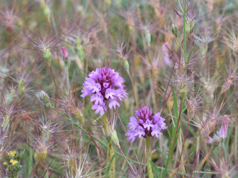 La plateforme est constituée d’une pelouse méditerranéenne dominée par l’Égilope ovale. Deux orchidées y fleurissent durant le printemps : l’Orchis pyramidal et l’Orchis bouc. Différentes espèces de papillons butinent sur ces pelouses comme le Demi-deuil, le Cuivré commun ou encore des mélitées. Il est également possible d’y observer d’autres arthropodes comme des araignées-crabes chassant à l’affût sur des fleurs. Des rapaces comme le Milan noir apprécient également ces zones ouvertes pour chasser.
