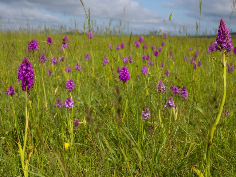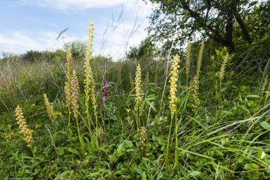 Nous avons recensé plus de 20 espèces d’Orchidées dont le rare Ophrys du Gers, mais aussi d’autres espèces végétales rares et protégées dont la Sabline des chaumes, la Phalangère à fleurs de lys et le Miroir de Vénus. Un projet de conservation des plantes messicoles (accompagnatrices de moissons aujourd’hui menacées de disparition en raison des techniques agricoles modernes) est mené sur des parcelles appartenant à l’aéroport, et permet en particulier à la Dauphinelle de Verdun et à la Nigelle de France de prospérer. Les Guêpiers d’Europe, les Oedicnèmes criards, mais aussi des Busards cendrés et occasionnellement le Circaète Jean-le-Blanc ou l’Aigle botté profitent de la richesse du milieu. Du côté des insectes, nous pouvons entre autres citer l’Azuré du serpolet, potentiellement reproducteur sur la plateforme. Enfin, c’est un milieu apprécié des chauves-souris, avec 19 espèces enregistrées sur les 34 espèces françaises.