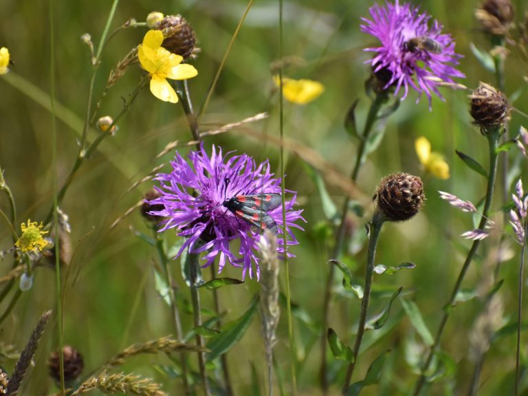De nombreux habitats sont présents sur l’aéroport de Cherbourg Manche, ce qui permet à une large diversité d’espèces animales et végétales d’être présentes. Ces prairies hébergent à la fois de la Jacinthe des bois (Hyacinthoides non-scripta), de la Violette des champs (Viola arvensis), de la Digitale pourpre (Digitalis purpurea), de la Cardamine des prés (Cardamine pratensis), de l’Ajonc d’Europe (Ulex europaeus) et différentes orchidées comme Orchis bouffon (Anacamptis morio), Orchis mâle (Orchis mascula) et Orchis bouc (Himantoglossum hircinum). Concernant la faune, la Vipère péliade (Vipera berus) a pu être identifiée ainsi que le Lièvre d’Europe (Lepus europaeus), le Goéland marin (Larus marinus), la Bécassine des marais (Gallinago gallinago), le Pipit farlouse (Anthus pratensis), le Tarier des prés (Saxicola rubetra), le Carabe des bois (Carabus nemoralis), la Zygène du trèfle (Zygaena trifolii) ainsi que différentes espèces d’amphibiens comme le Triton palmé (Lissotriton helveticus) au niveau des fossés humides et bassins de rétentions d’eau.