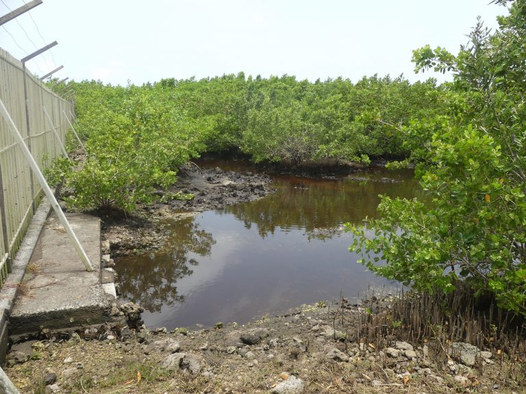 Côté flore, la plateforme a la chance d’être bordée par une mangrove impénétrable constituée de plusieurs espèces de palétuviers et abritant une faune typique.