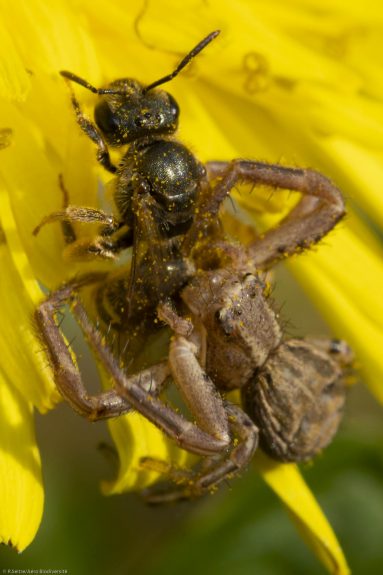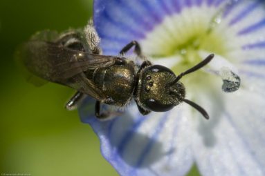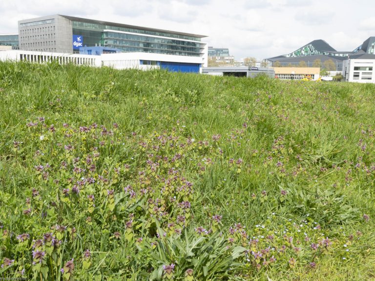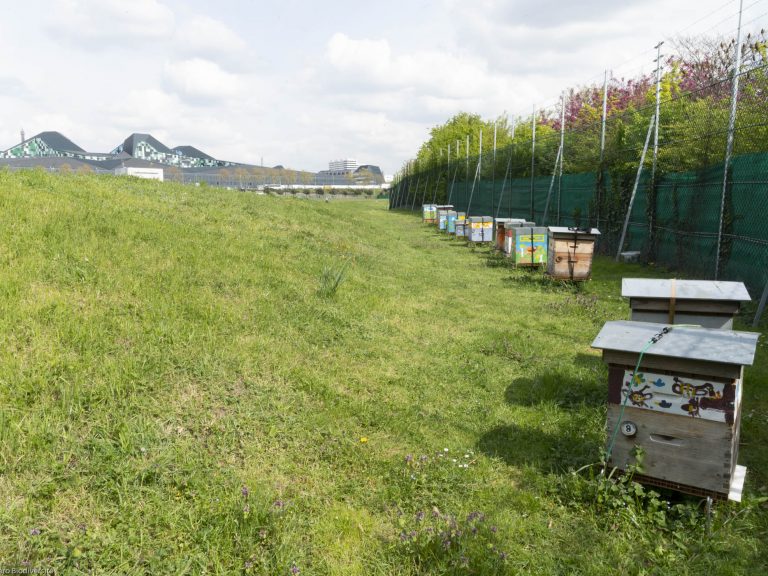 Au côté des abeilles domestiques, il est intéressant de distinguer la présence d’abeille solitaires : le genre Nomada, au printemps, ou l’Andrène de la bryone (Andrena florea) butinent dans les trèfles et les bryones. De nombreuses pipistrelles parcourent l’héliport le soir dans cet espace urbain. Il n’est pas rare de voir passer un renard ou un hérisson qui longe les zones arborées. »