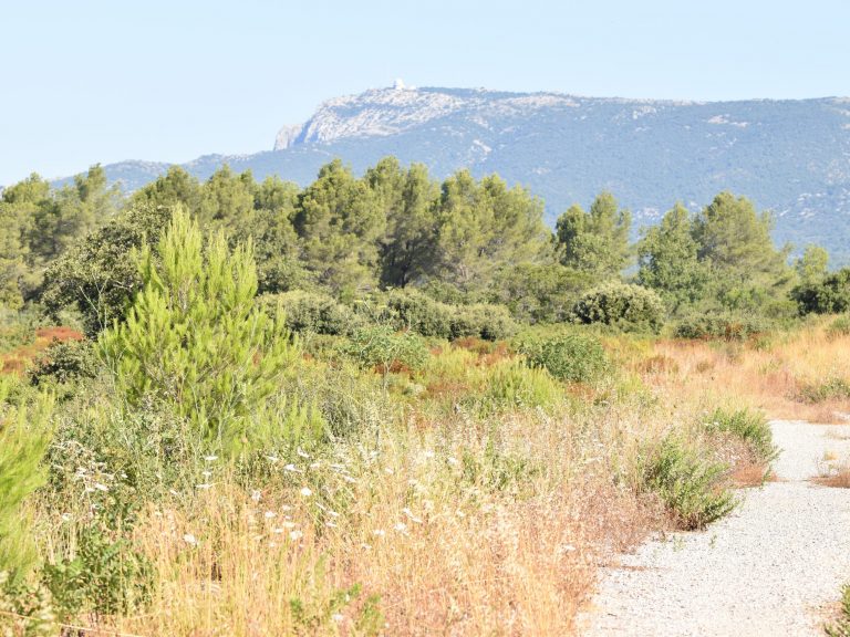 Les espaces verts de la plateforme sont composés de trois grandes formations assez typiques pour la région : des pelouses sèches, de la garrigue à romarin et une pinède. L’ensemble de ces habitats permettent d’accueillir de nombreuses espèces de papillons tels que le Faune (Hipparchia statilinus), le Sylvain azuré (Limentis reducta), ainsi que des orthoptères comme le Criquet des pins (Chorthippus vagans vagans). Concernant l’avifaune, la Tourterelle turque (Streptopelia decaocto) et le Faucon crécerelle (Falco tinnunculus) sont bien présents sur la plateforme. Le Circaète Jean-le-Blanc (Circaetus gallicus), un grand rapace d’apparence claire, a été observé en train de chasser au-dessus des prairies de l’aéroport.