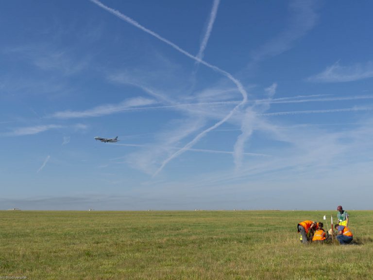 On note l’omniprésence des Alouettes des champs. Entre ville et plaines agricoles, l’aéroport est d’une importance majeure pour les espèces prairiales et sert aussi de refuge à des espèces migratrices de passage. Nous y avons ainsi observé le Merle à plastron et la Locustelle tachetée. Les Ophrys abeille et Orchis pyramidaux, sans être des espèces rares, sont les témoins de prairies semi-naturelles. Et 8 espèces différentes de chauves-souris enregistrées sur les nuits d’écoute prouvent la richesse en insecte de ces lieux dépourvus d’insecticides.