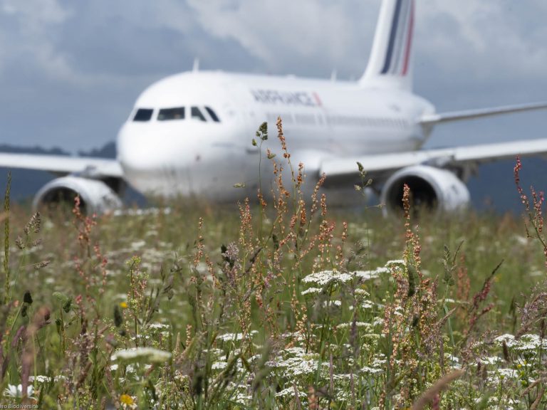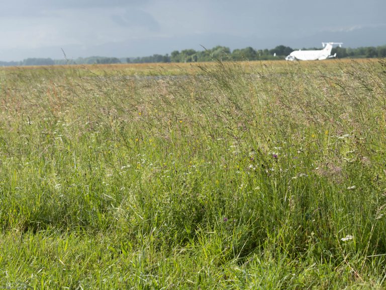 L’aéroport de Pau-Pyrénées est situé dans un ancien réseau de zones humides de plusieurs milliers d’hectares : le Pont-Long. Autrefois occupé par des boisements épars, des marécages et des landes (dont on peut encore en observer des reliques), il est aujourd’hui dominé par des prairies mésophiles et hygrophiles. Le réseau de fossés et de cours d’eau qui traversent l’aéroport favorisent la présence d’importantes populations d’Odonates (libellules et demoiselles). La plateforme accueille ainsi une faune et une flore riche, inféodées à ces milieux semi-naturels. 216 espèces de plantes et 68 espèces d’oiseaux ont été inventoriés depuis 2019.